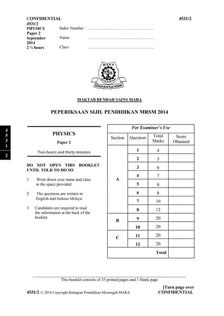 Spmsoalan Skema Trial Spm 2014 Mrsm Physics Answer Scheme Spmrsm 2014 Kertas Course Hero